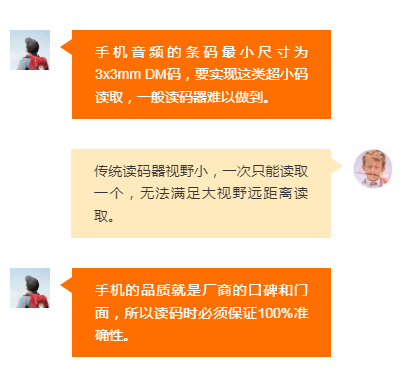 在手机组装阶段需进行音频测试,传统的音频测试过程采用的紧凑型读码器,遇到的麻烦可不少: